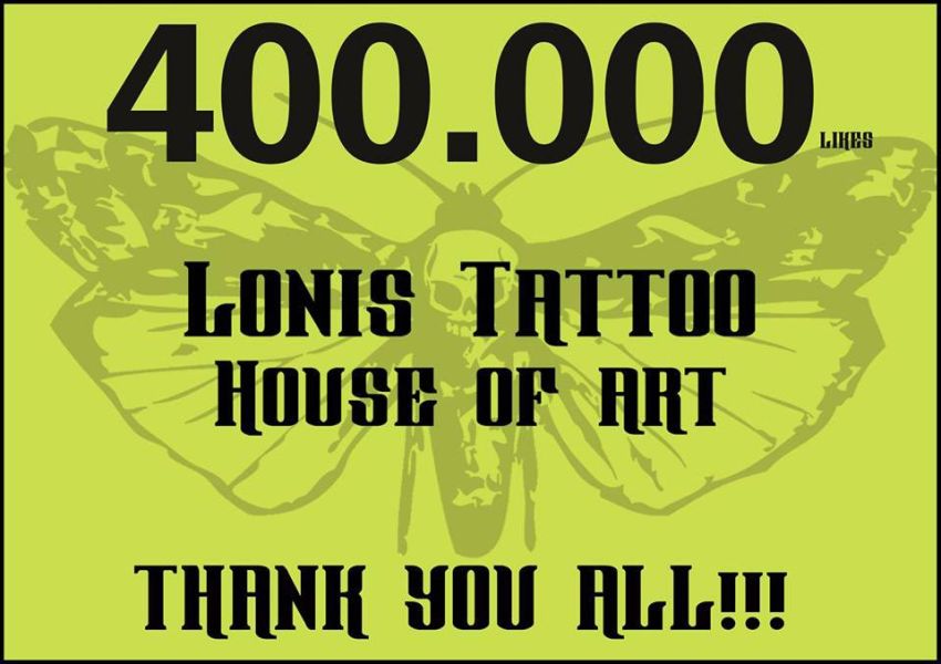 400.000 LIKES 400.000 facebook likes at Lonis Tattoo Studio!!! Thank you so much for all your love and support #lonistattoo Prev Next